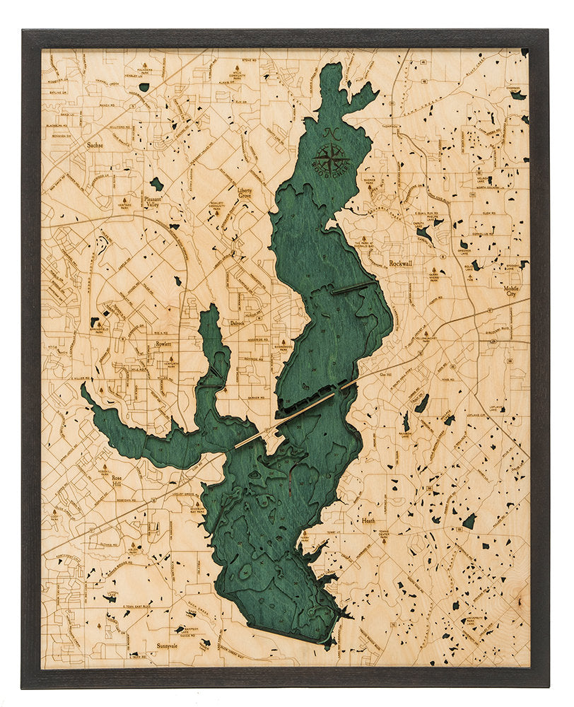 Lake Ray Hubbard, Texas 3D Wooden Map | Topographic Wood Chart