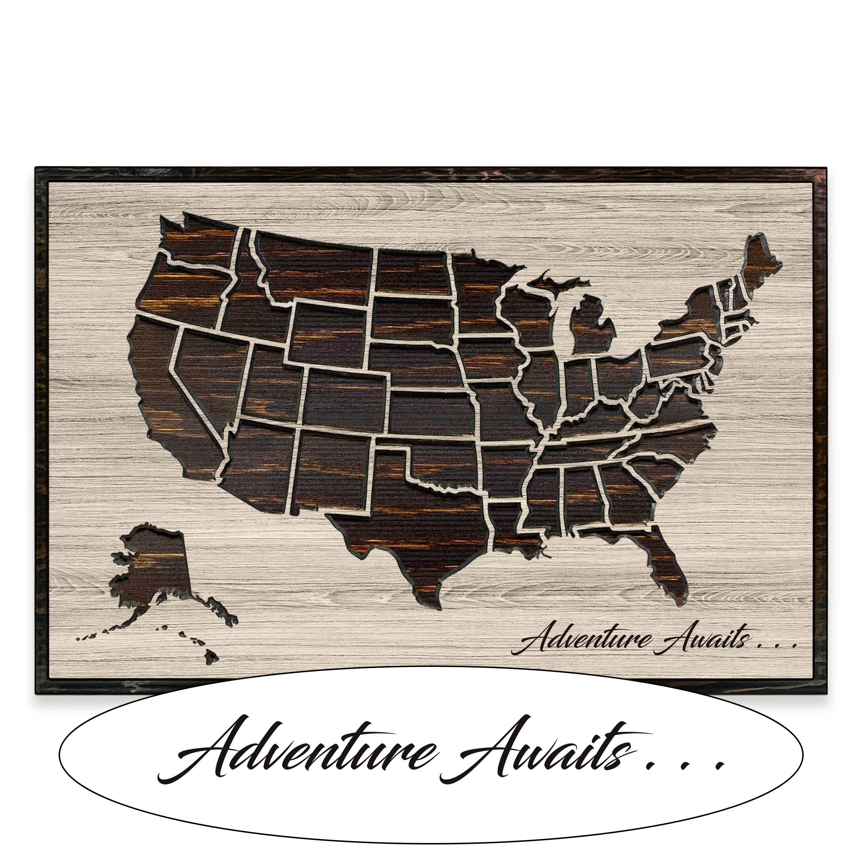 Push Pin Map of USA Carved Wood Map Wall Art